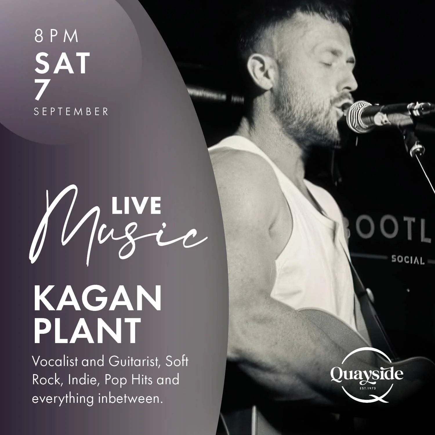 Experience the vibrant and electrifying atmosphere of live music at Quayside, your ultimate destination for musical entertainment. Whether you're a local or a visitor, our venue has something to offer everyone. Immerse yourself in a diverse range of genres, from foot-tapping pop cover to memorable rock anthems, and everything in between, performed by our lineup of featured talented local artists, guaranteeing a memorable experience for music lovers of all tastes.