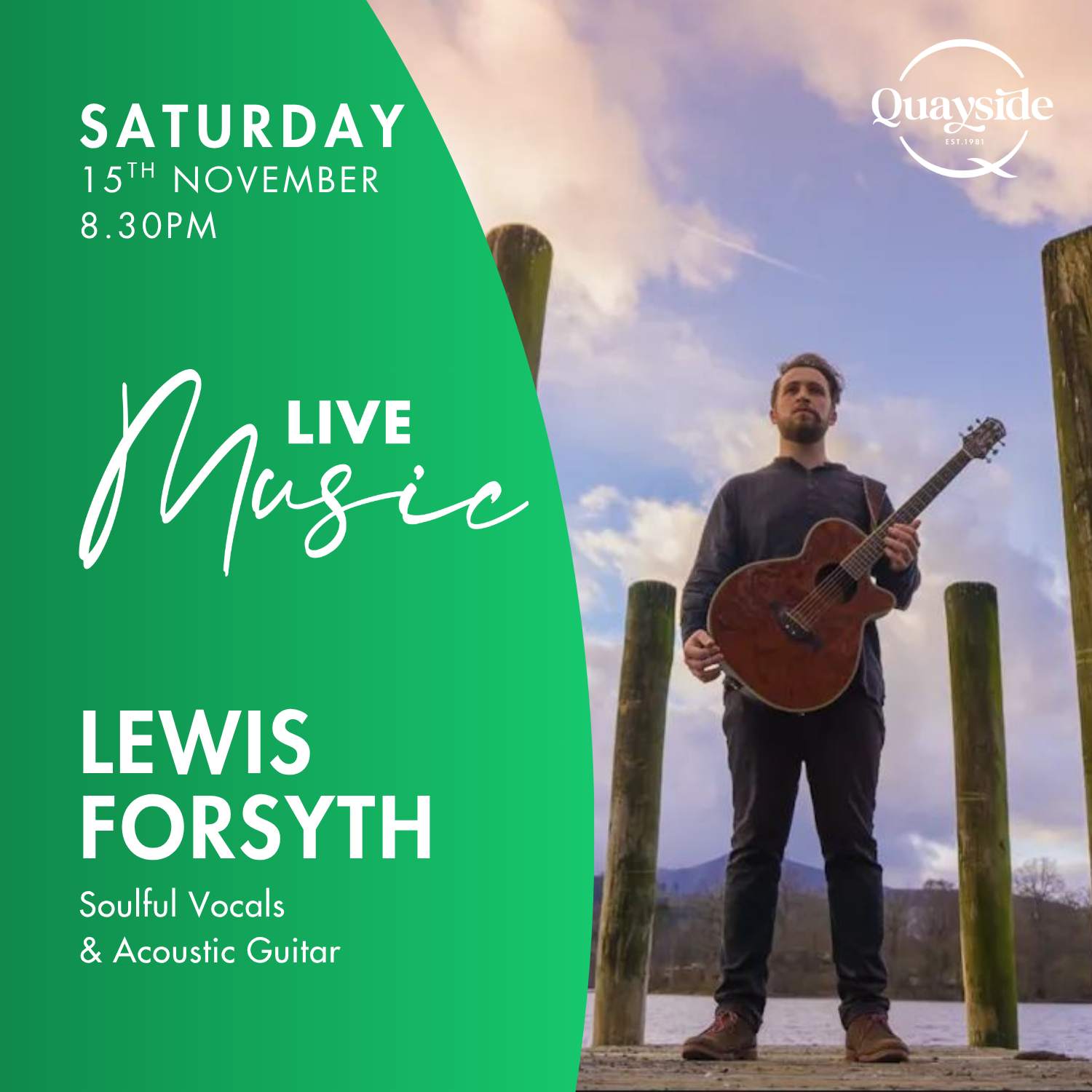 Enjoy a drink, great food and the wonderful Lake View and Lakeside Seating while listening to the soulful vocals & guitar of Lewis Forsyth.