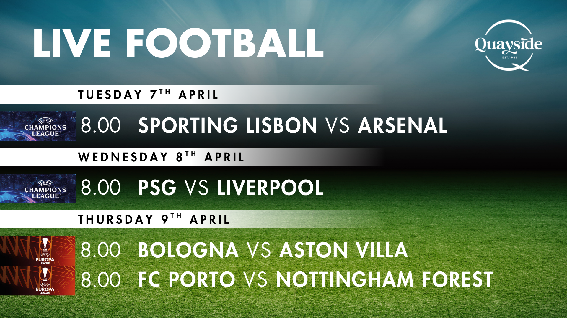 LIVE Football Matches at Quayside